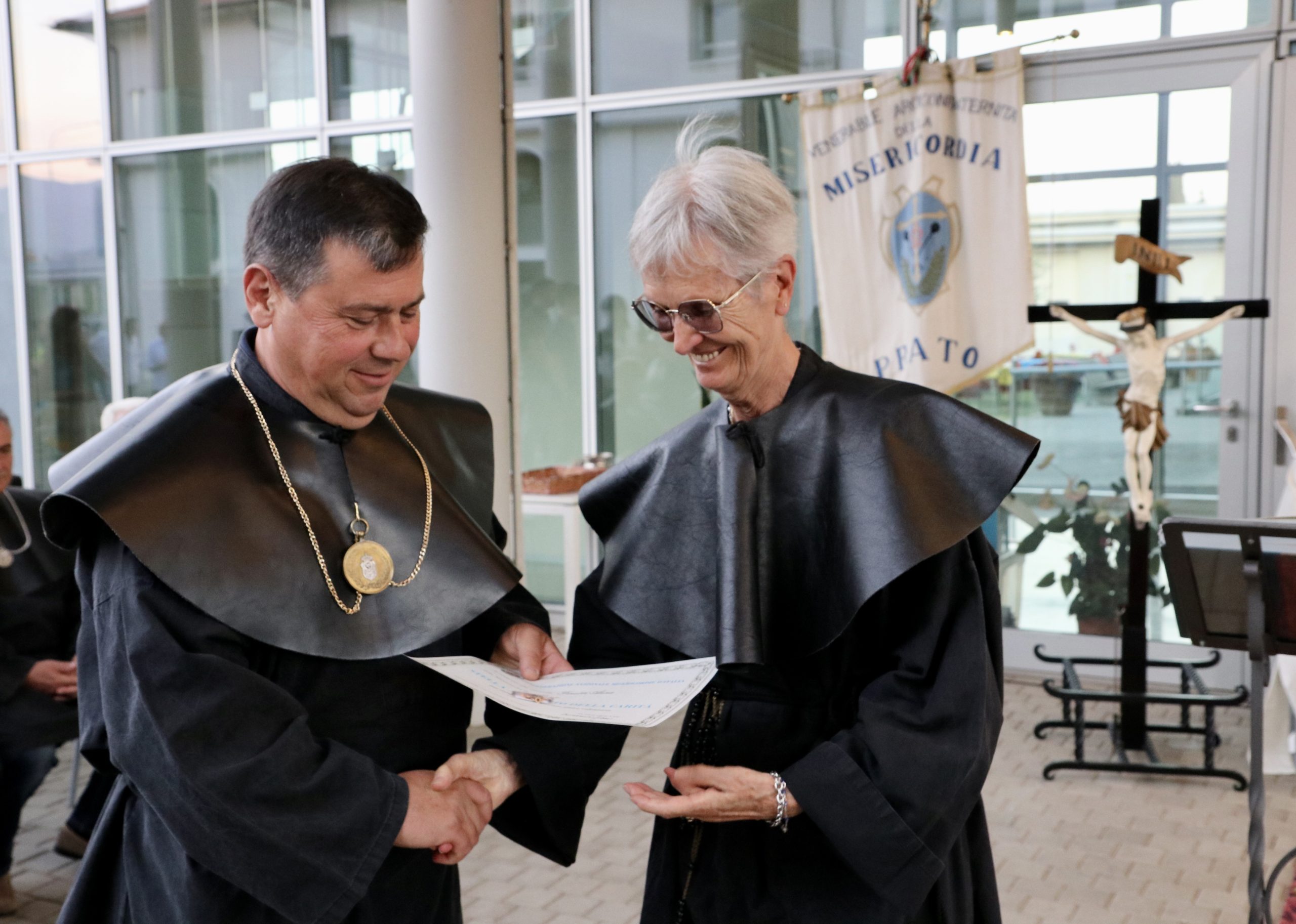 Nell’occasione, come vuole la tradizione, l’Arciconfraternita ha conferito il titolo di Capo Guardia e di Capo Guardia d’Onore ai confratelli e alle consorelle che hanno compiuto, rispettivamente, quindici e quaranta anni di servizio attivo tra le fila della Misericordia di Prato. La medaglia che rappresenta l’onorificenza è stata consegnata alla famiglia di Paolo Diani, morto dieci giorni dopo aver ottenuto da parte del Magistrato la nomina a Capo Guardia d’Onore.