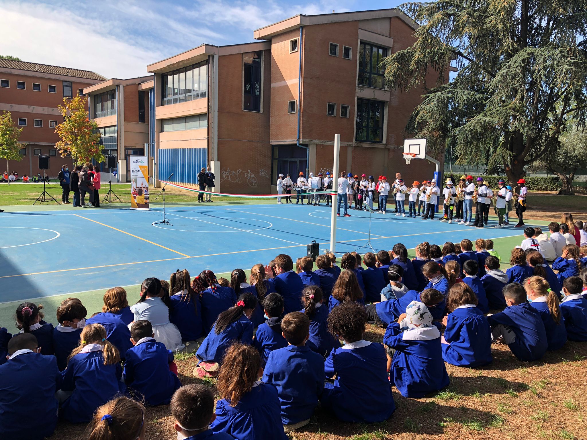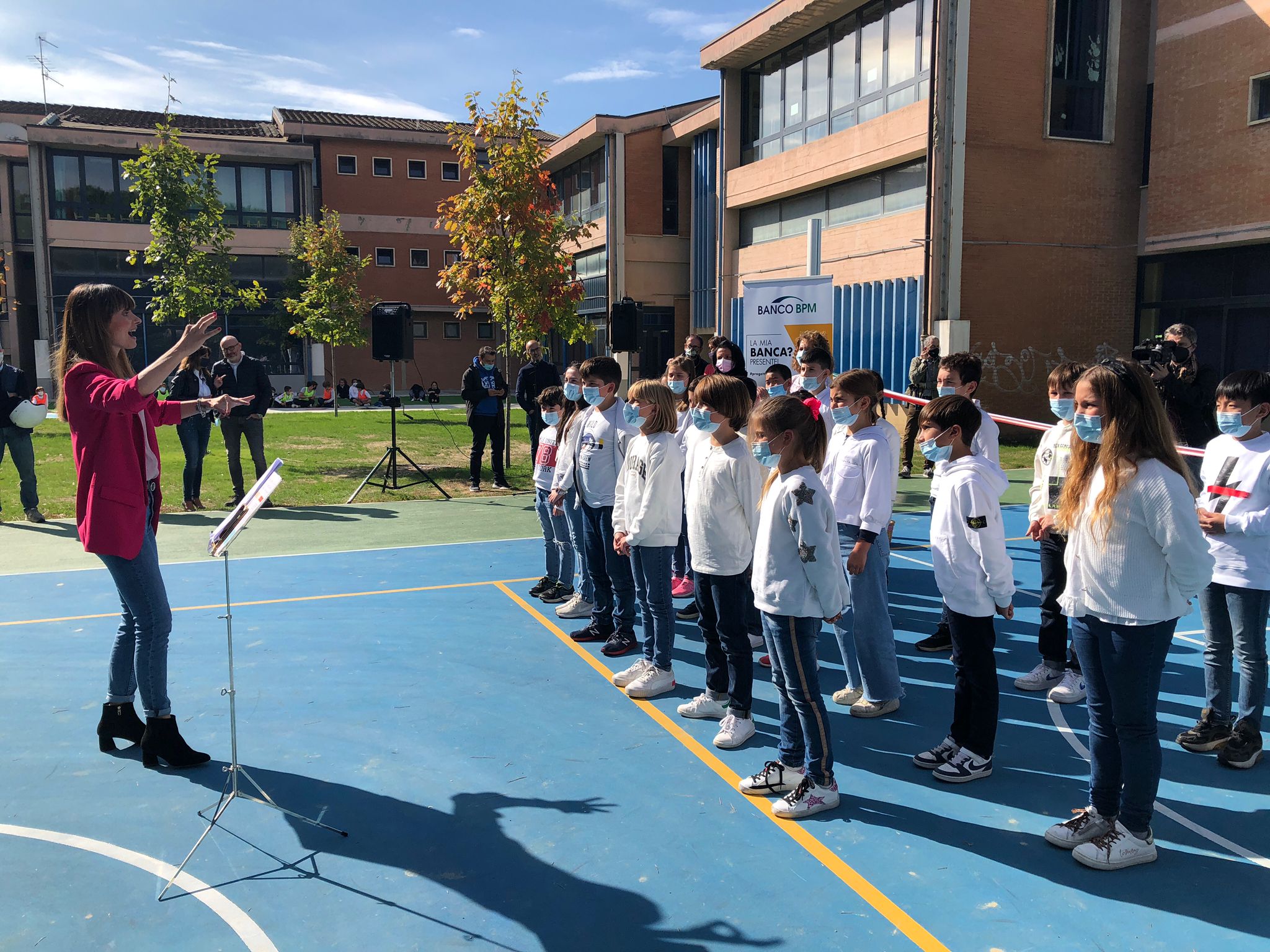 Stamani l’inaugurazione del playground a cui si sono aggiunte altre due aree, l’Aula Verde e il giardino centrale, per la didattica all’aria aperta.