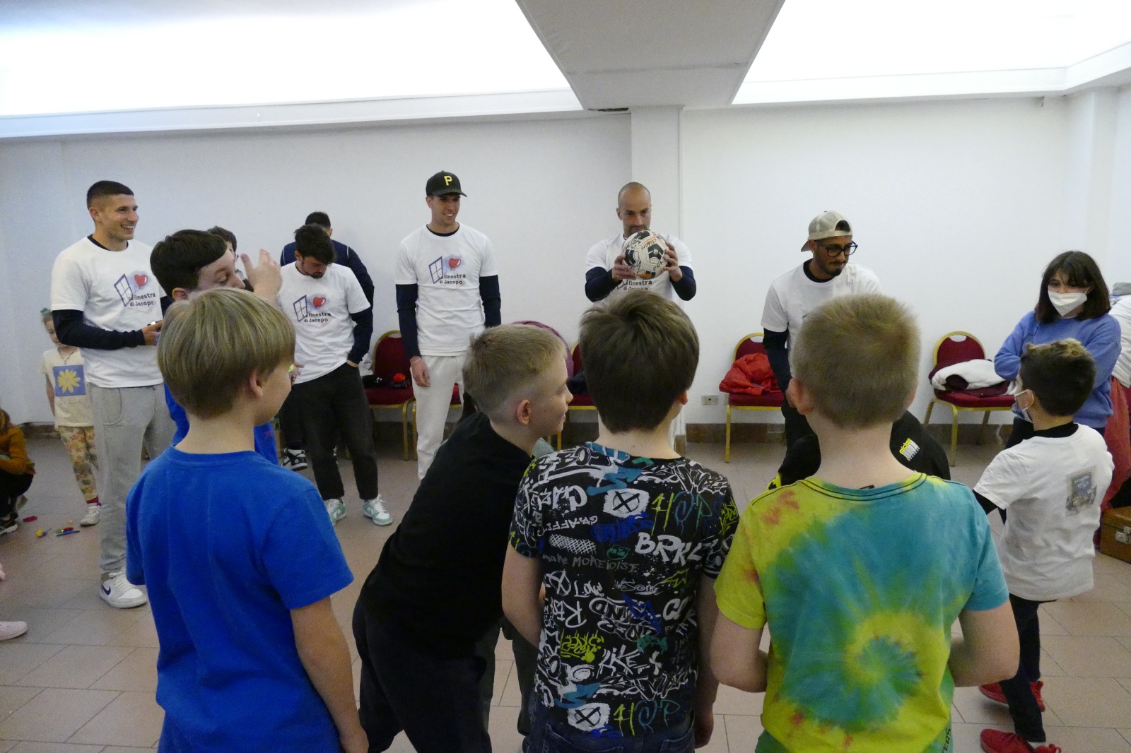 Ieri pomeriggio una rappresentativa di giocatori dell’Ac Prato ha fatto visita ad una trentina di bambini ucraini scappati dalla guerra ed ospitati insieme alle madri all’hotel Delta Florence di Calenzano. Due calci al pallone, qualche disegno e bolle di sapone per cercare di portare un sorriso e provare a dimenticare per qualche ora l’ orrore della guerra. L’incontro è stato possibile grazie all’associazione La finestra di Jacopo.