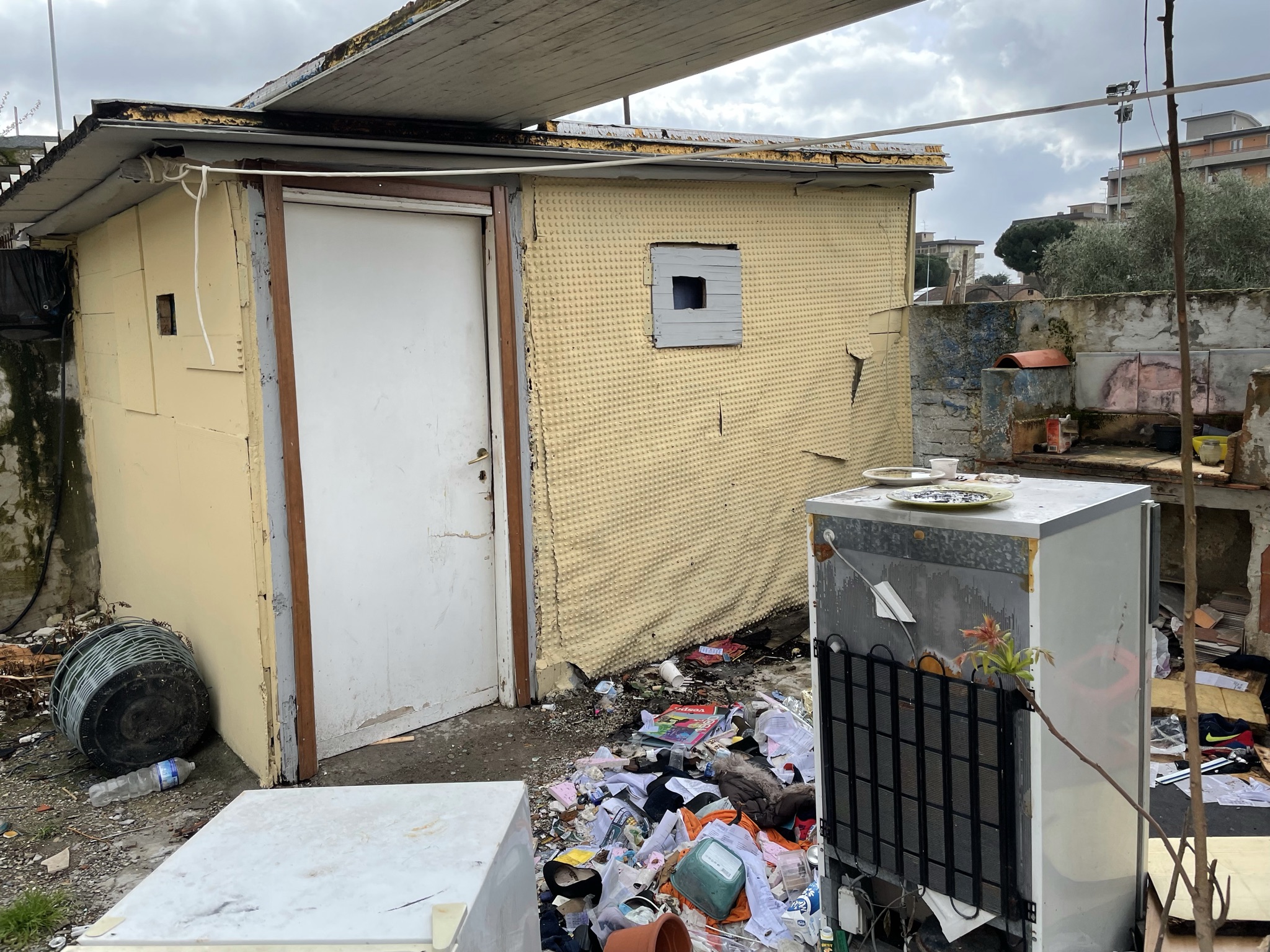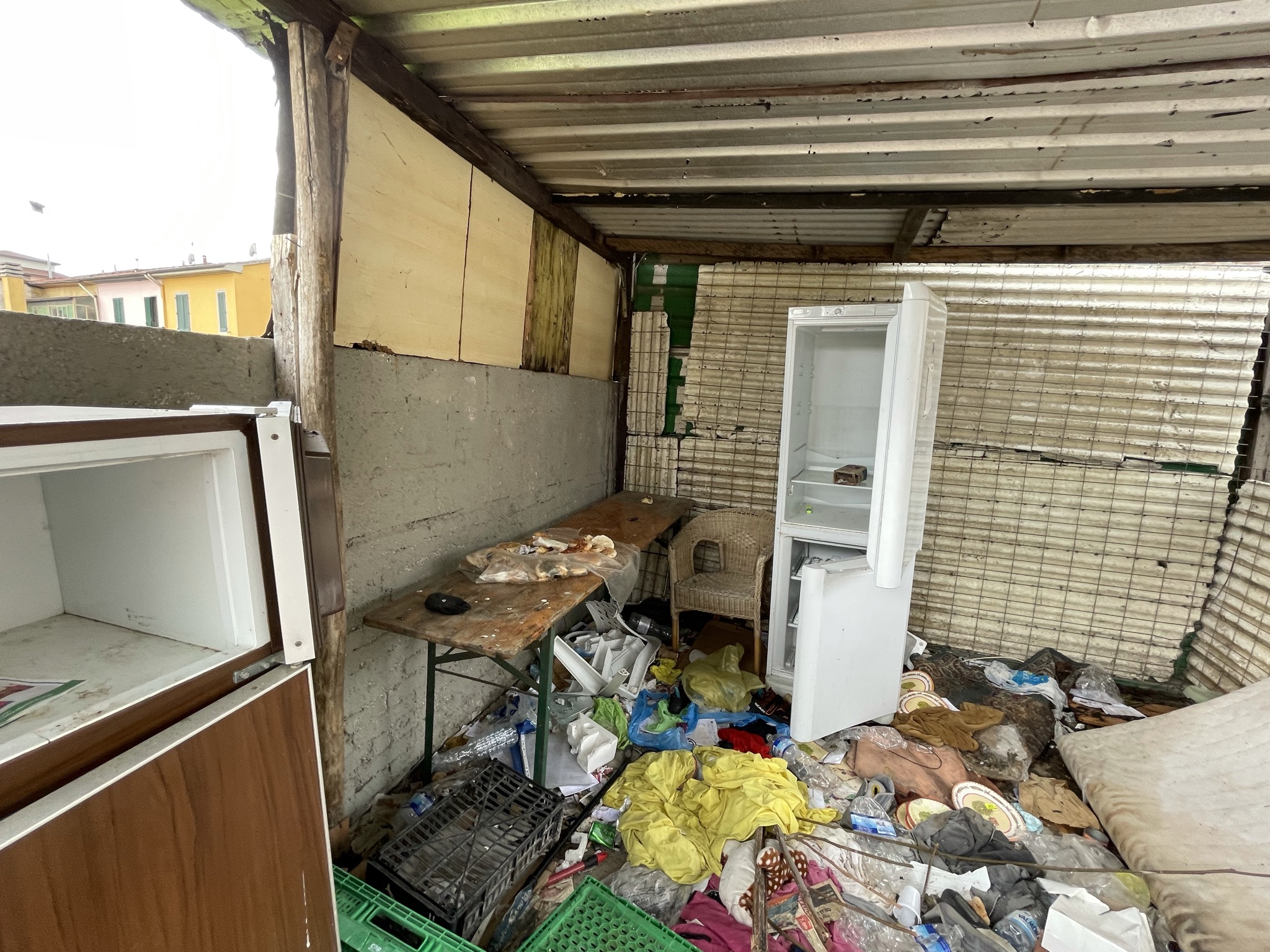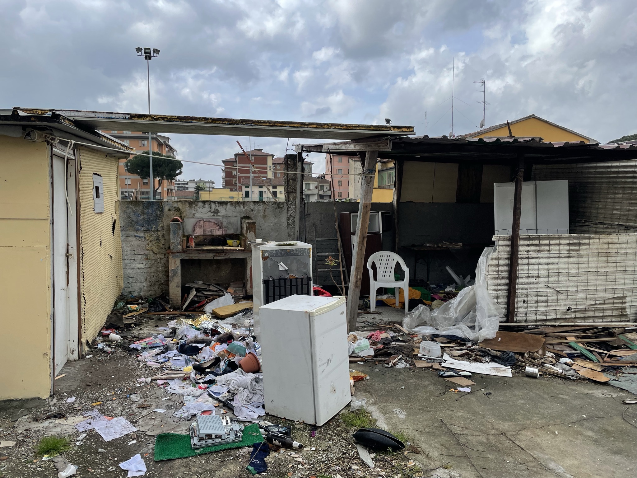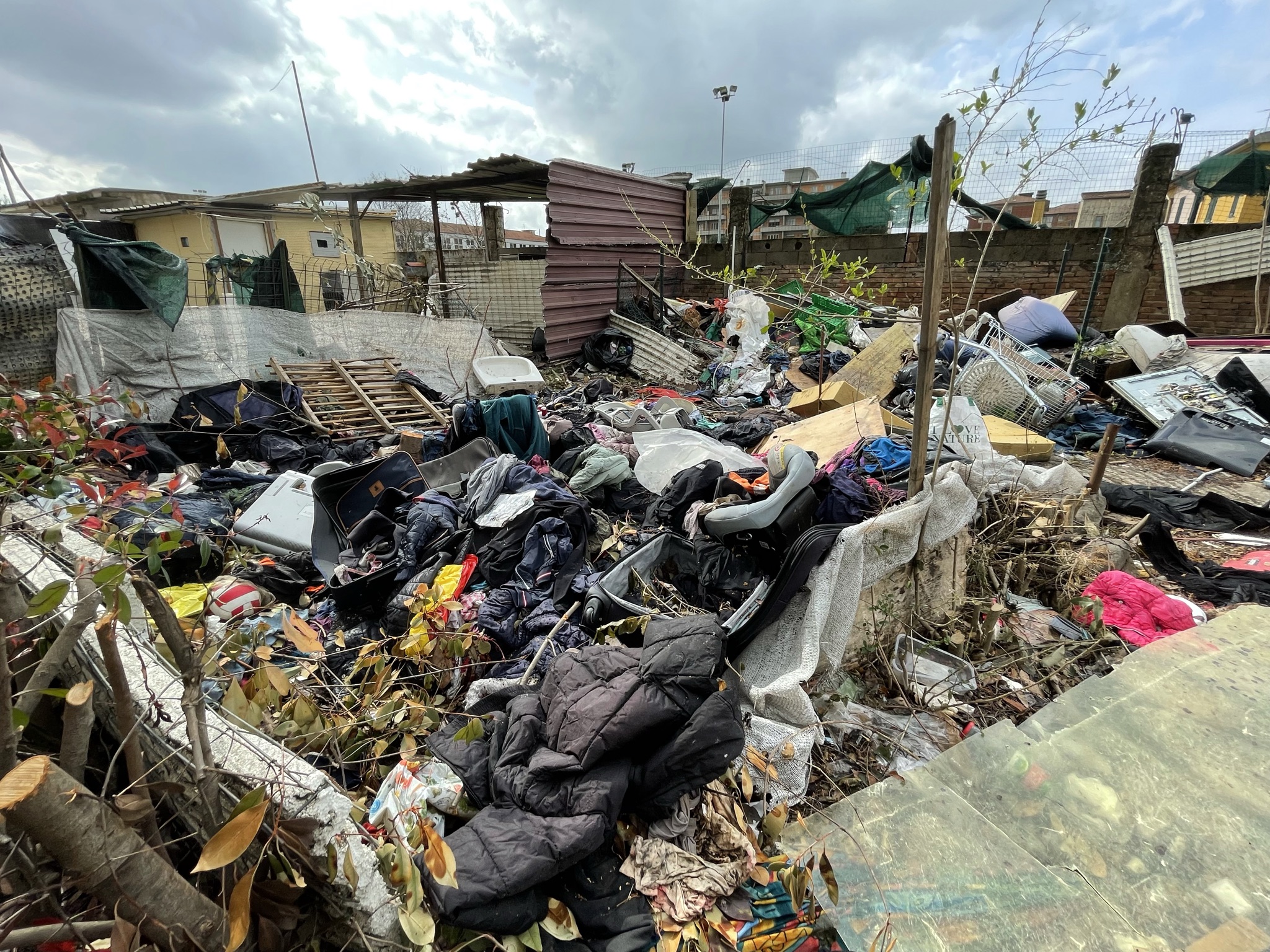 Una discarica a cielo aperto a pochi passi dalle scuole elementari Collodi di via del Purgatorio. E’ il desolante panorama che si apre nei pressi dell’ex campo Ambrosiana, nella corte di pertinenza delle ex case minime, abitazioni di proprietà del Comune di Prato, in condizioni fatiscenti, che negli ultimi anni sono state occupate abusivamente più volte. In passato sono stati effettuati alcuni sgomberi, che però non hanno risolto la situazione. Anche oggi nell’immobile ci sono segni di occupazioni; le finestre restano sbarrate con i mattoni, ma una porta di ingresso è stata divelta e sostituita da un materasso. In altre baracche malmesse, nella corte, si vedono tracce di rifugi di fortuna e resti di cibo. Il tutto in mezzo a quintali di sporcizia e rifiuti: pneumatici, frigoriferi e lavatrici, porte, batterie, televisori, masserizie, abiti, seggiolini per bambini, valigie, borse, carrelli della spesa e altro ancora. Per rimuovere tutti i rifiuti, un mese fa il Comune ha conferito un affidamento diretto da 10.000 euro ad Alia.