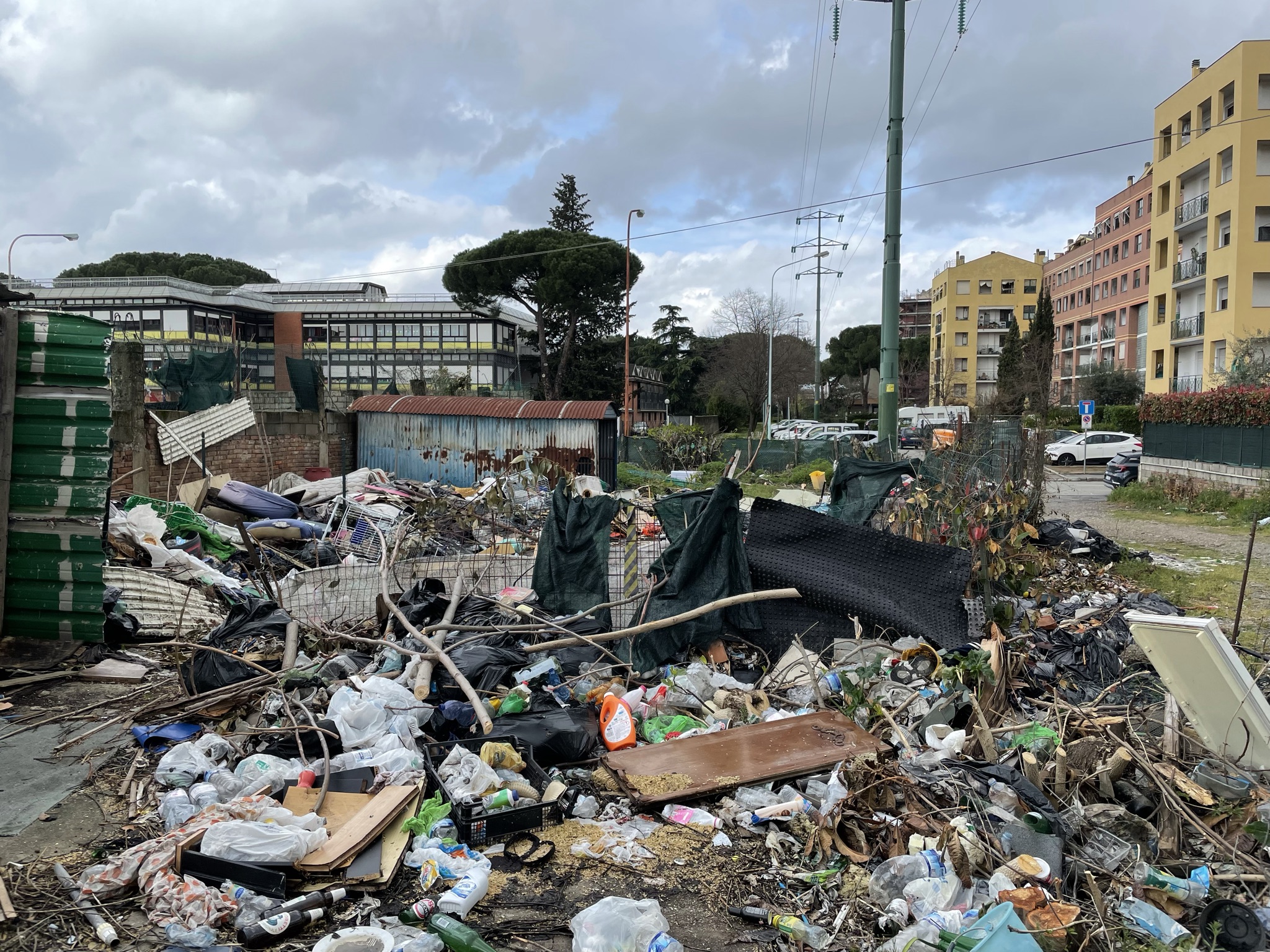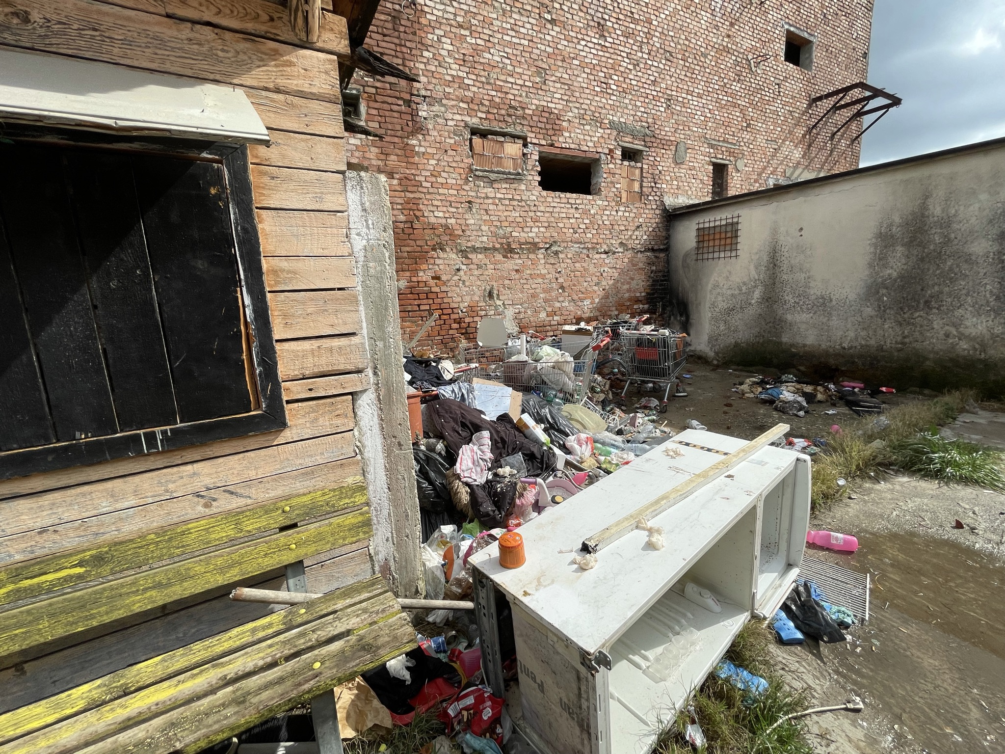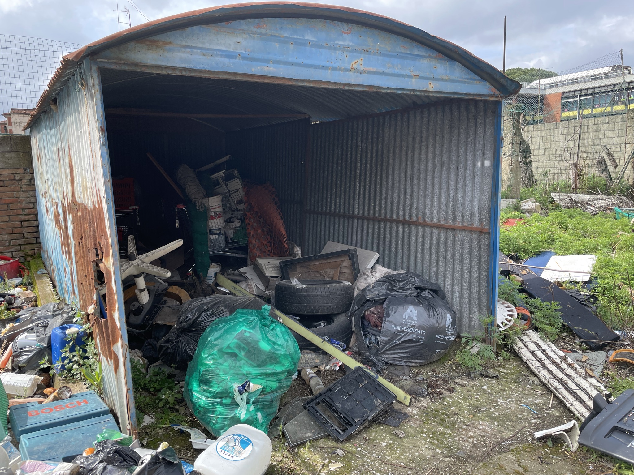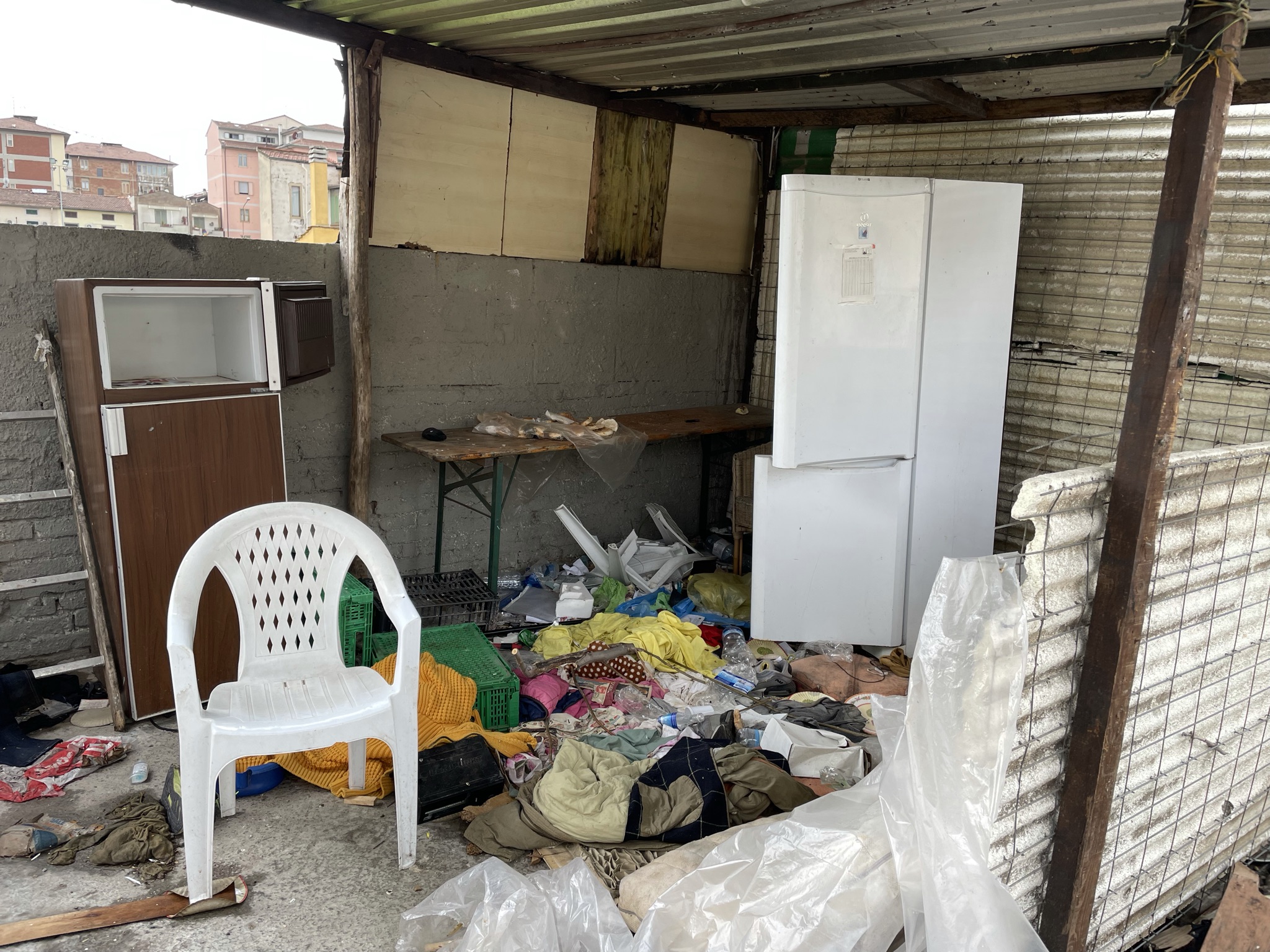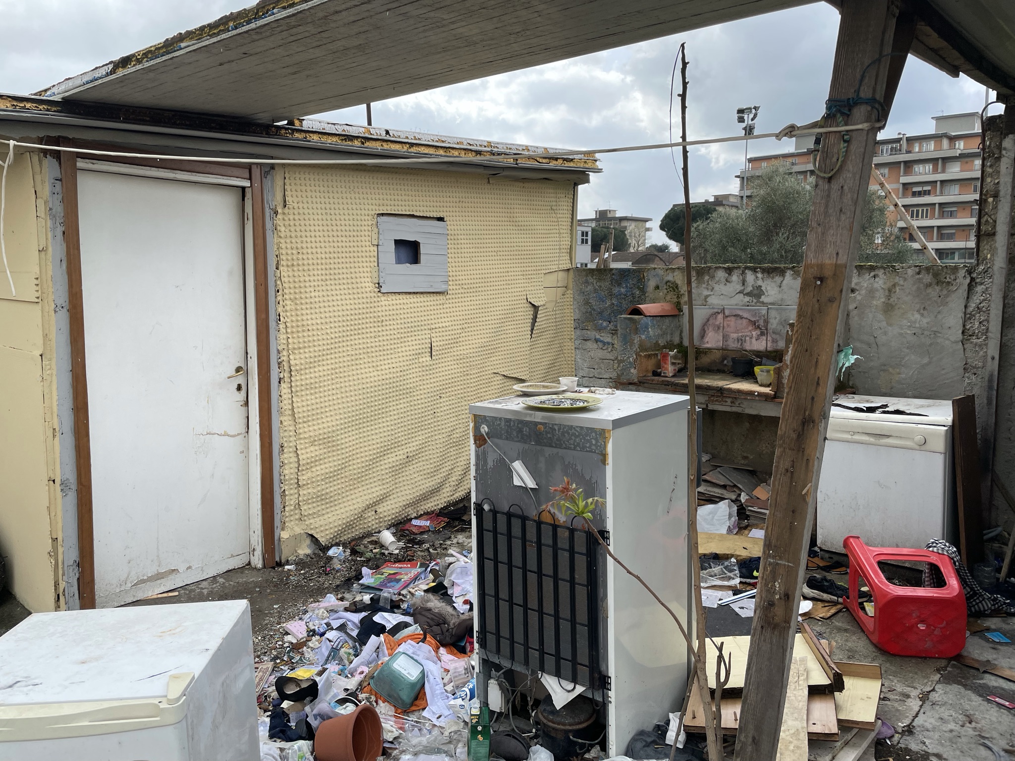 Una discarica a cielo aperto a pochi passi dalle scuole elementari Collodi di via del Purgatorio. E’ il desolante panorama che si apre nei pressi dell’ex campo Ambrosiana, nella corte di pertinenza delle ex case minime, abitazioni di proprietà del Comune di Prato, in condizioni fatiscenti, che negli ultimi anni sono state occupate abusivamente più volte. In passato sono stati effettuati alcuni sgomberi, che però non hanno risolto la situazione. Anche oggi nell’immobile ci sono segni di occupazioni; le finestre restano sbarrate con i mattoni, ma una porta di ingresso è stata divelta e sostituita da un materasso. In altre baracche malmesse, nella corte, si vedono tracce di rifugi di fortuna e resti di cibo. Il tutto in mezzo a quintali di sporcizia e rifiuti: pneumatici, frigoriferi e lavatrici, porte, batterie, televisori, masserizie, abiti, seggiolini per bambini, valigie, borse, carrelli della spesa e altro ancora. Per rimuovere tutti i rifiuti, un mese fa il Comune ha conferito un affidamento diretto da 10.000 euro ad Alia.