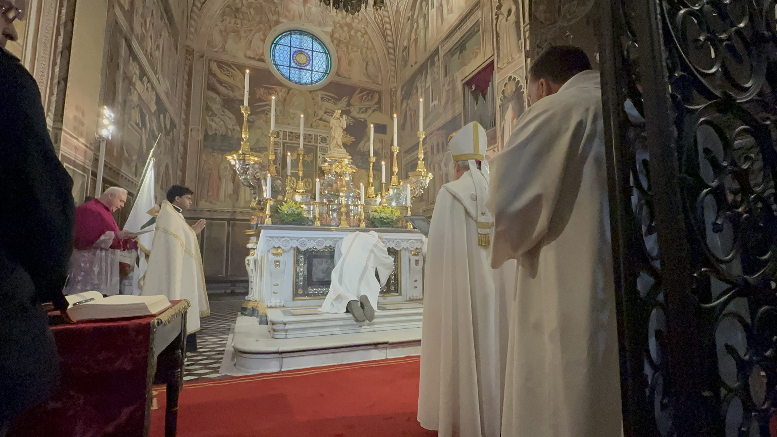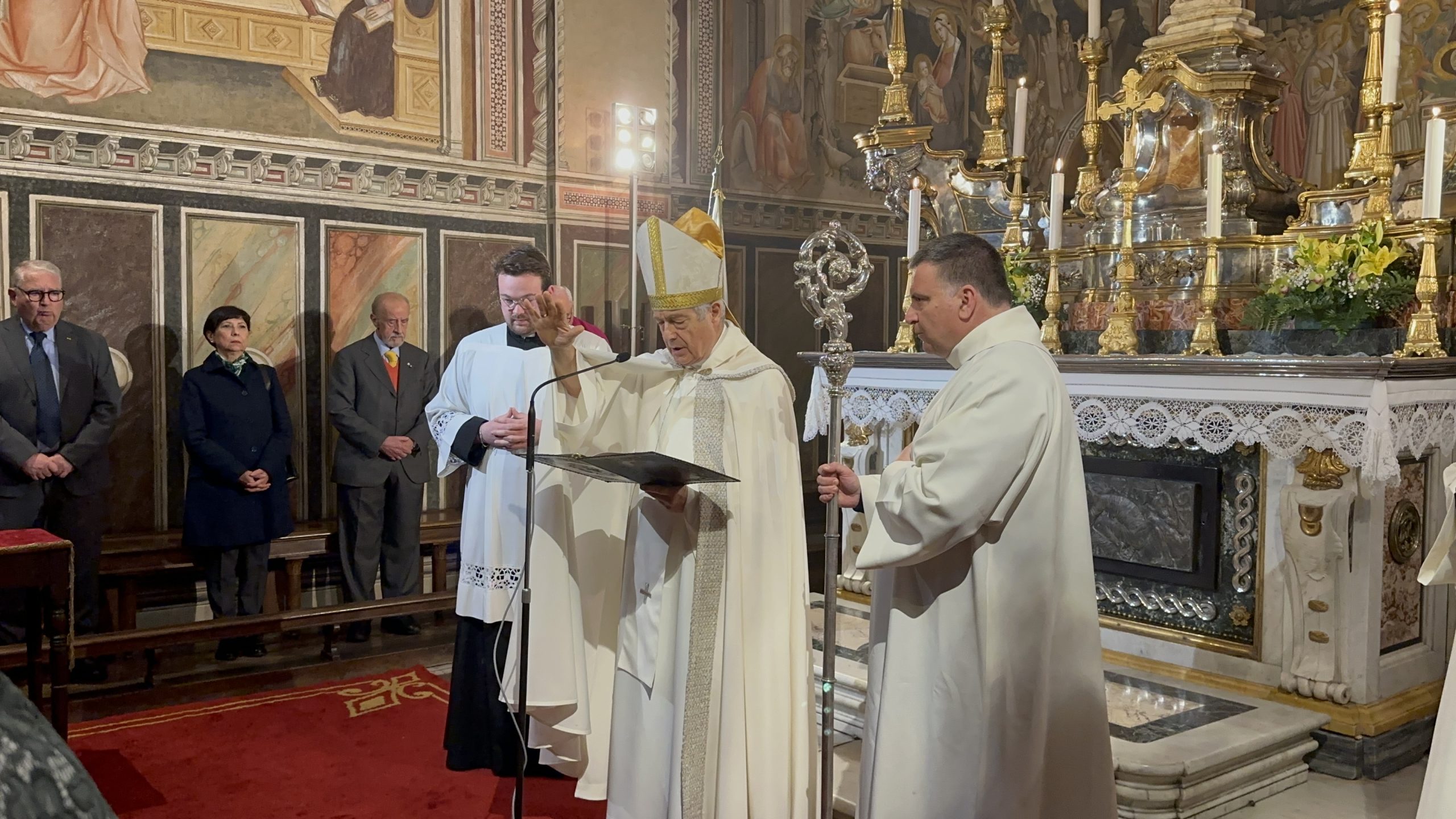 Si è svolta nel pomeriggio del primo maggio, come da tradizione, la seconda ostensione dell’anno del Sacro Cingolo di Maria. Il rito è stato officiato in Duomo dal vescovo monsignor Giovanni Nerbini dopo la recita dei Vespri. Presente il sindaco Matteo Biffoni, alla sua ultima ostensione da primo cittadino, accompagnato dal corpo dei Valletti comunali e dal cerimoniere de Comune di Prato Ivan Marzocco. Come da tradizione, i testimoni del rito sono stati due maestri del lavoro.